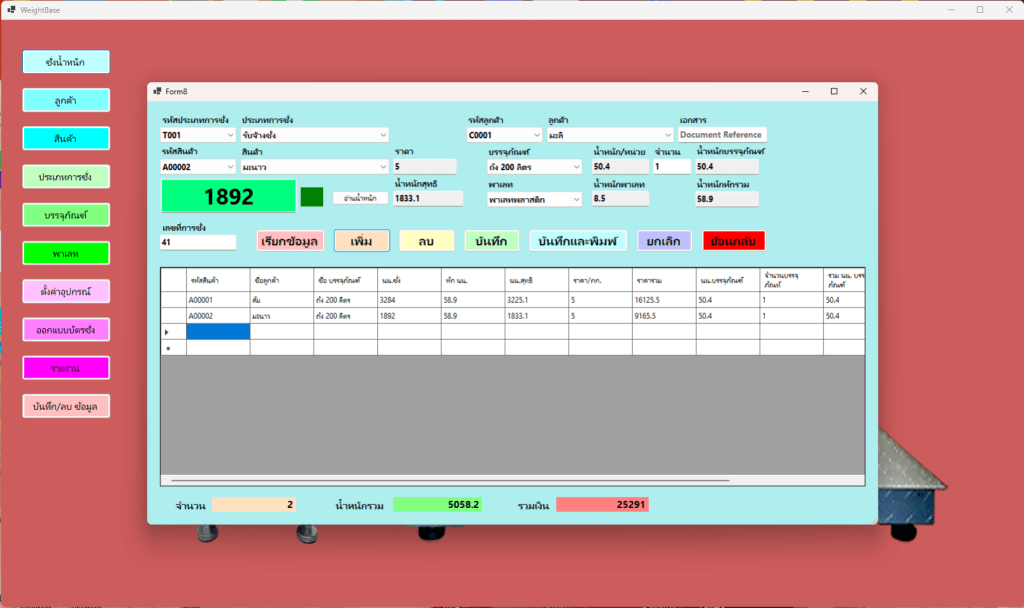 -สร้างบันทึกข้อมูล ลูกค้า, สินค้า, ประเภทการชั่ง, น้ำหนักภาชนะ, น้ำหนักพาเลส
