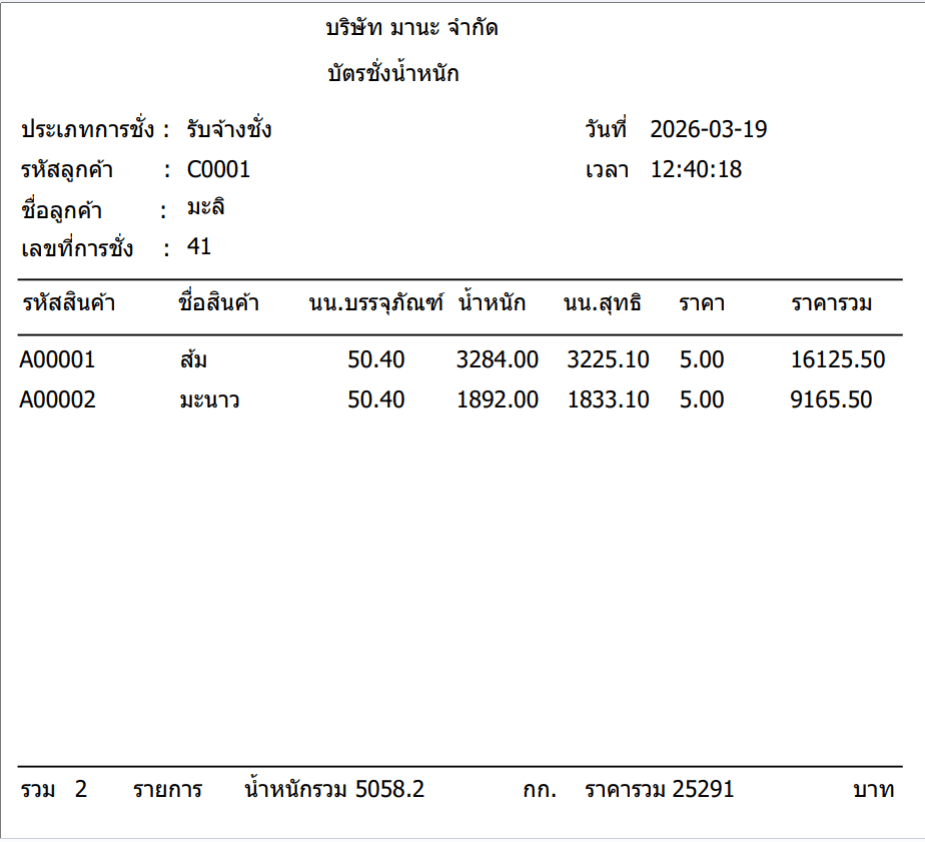 -พิมพ์บัตรชั่ง คำนวณ น้ำหนักรวม, ราคารวม
