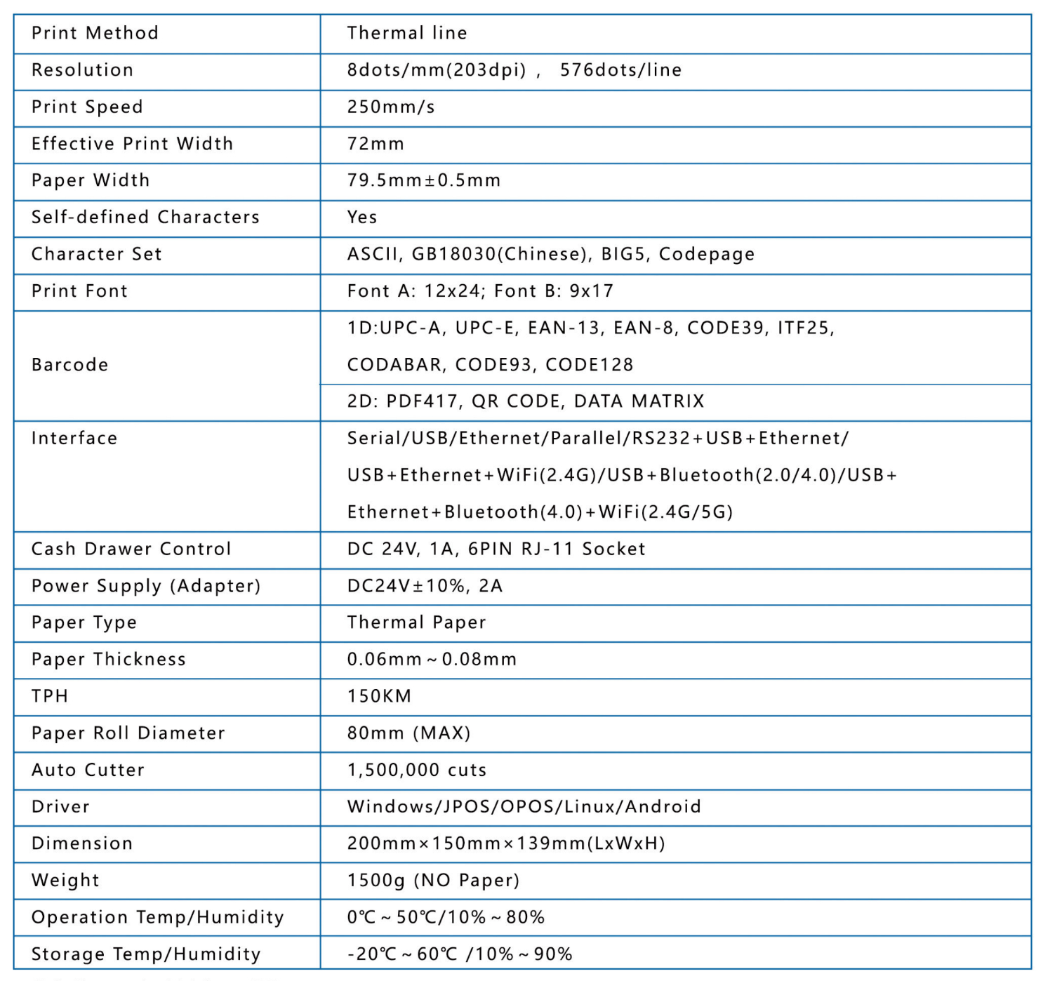 ใช้พิมพ์ ใบเสร็จ, ใบชั่งน้ำหนักการพิมพ์ที่รวดเร็วใช้กับกระดาษความร้อน หน้ากว้าง 80mmเชื่อมต่อกับเครื่องชั่งด้วย Serial RS232 + USB +LAN
